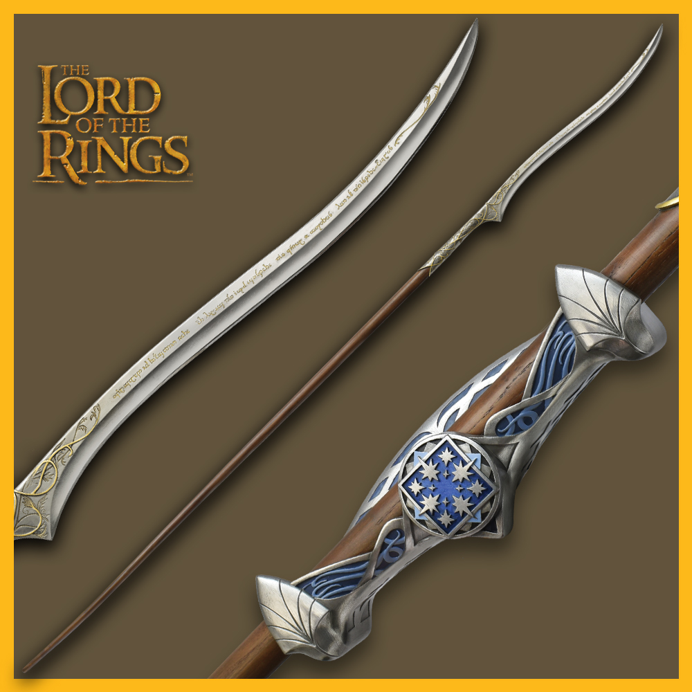 - Elven Inscription: The cold cast steel polyresin blade features intricate Elvish engravings that read, “The Orcs will fear my point of ice.”